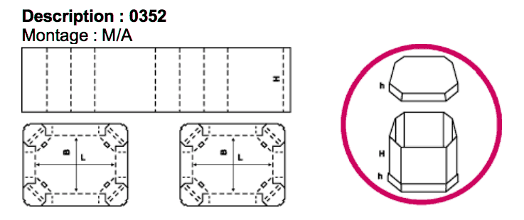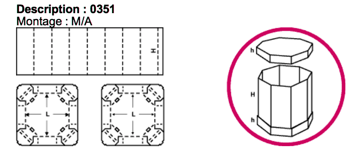 The shoebox shape is just one type of telescopic carton. We can also make versions that aren’t rectangular, such as octagonal boxes 0350, 0351 and 0352.