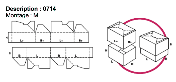 This type of carton is made up of a combination of a liner, and a sleeve which slides over the top. Each piece is usually one strip of card folded enough times to make a square shape with two openings.