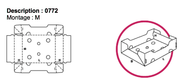 This carton style is usually made from one piece of cardboard, folded to form the bottom, sides and lid (if there is one). Examples of this type include pizza boxes and crate-style boxes for fruit.