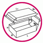 This style of box is commonly used for products like shoes. It consists of two or three separate sections which slide over each other. Sometimes the parts overlap completely; sometimes there is a distinct lid or base.